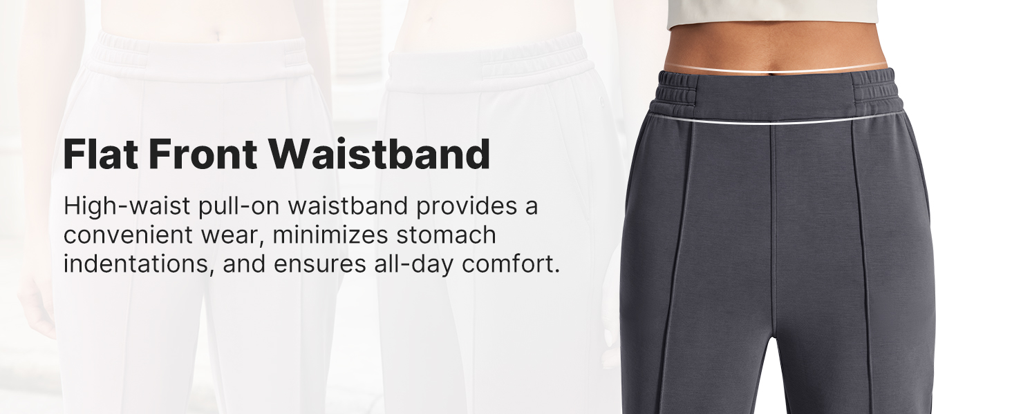 ✅ Flat Front Waistband - High-waist pull-on waistband provides aconvenient wear,minimizes stomachindentations, and ensures all-day comfort.